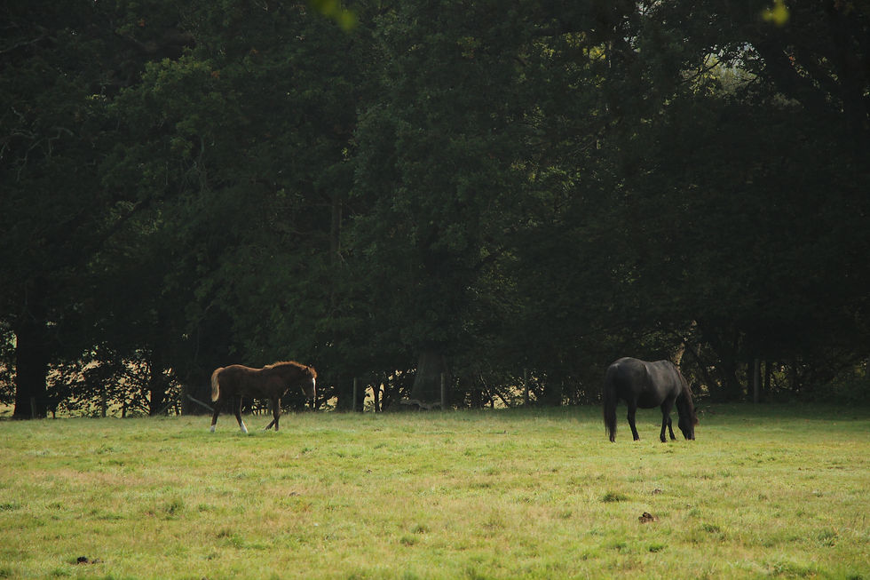 (↑才剛進來就看到朝思暮想的駿馬,在霧氣中靜靜吃草好似優雅的靈獸。馬匹真是我最喜歡的動物了,是力量與柔美的完美結合,沙場上有力敵千軍的勇猛,草坪上有悠閒漫步的優雅。)